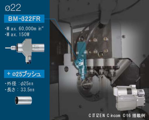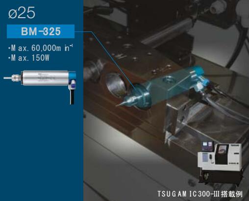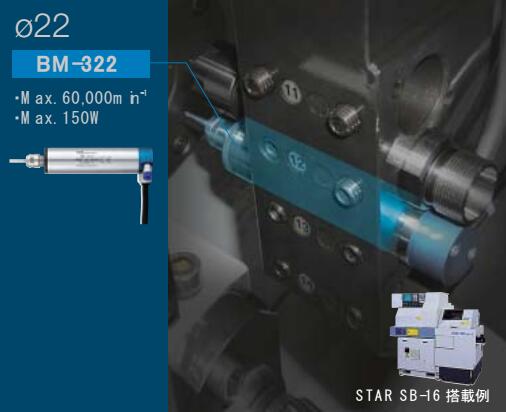 iSpeed3專(zhuān)為精密自動(dòng)車(chē)床開(kāi)發(fā)。主軸全場(chǎng)87.3mm,采用超小型精密控制器單元,馬達(dá)轉(zhuǎn)速可以100min-1的單位設(shè)置,實(shí)現(xiàn)微小精密切削加工。高速主軸特點(diǎn):1.高性能,高效率,高精度。2.采用高精度的陶瓷軸承。3.外徑規(guī)格有Φ19.05mm,Φ20mm,Φ22mm,Φ25。產(chǎn)品:控制器單元(100V,120V,200V,220V),轉(zhuǎn)速:1000~80000min-1;輸出方式:2通道(不可同時(shí)運(yùn)行);最大輸出功率:150W;定格消耗電流:0.65A;空氣消耗量:30l/min.BM-319F、BM-319、BM-320F、BM-320:主軸轉(zhuǎn)速:80000min-1;最大輸出功率:140W;主軸震動(dòng)精度:1μm以?xún)?nèi)。BM-322FL/BM-322FR,BM-322、BM-325:主軸轉(zhuǎn)速:60000min-1;最大輸出功率:150W;主軸震動(dòng)精度:1μm以?xún)?nèi)。
