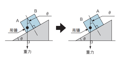 對于水平面的傾斜角度為θ。在此斜面上放一塊有吊錘的板。這樣斜面到直角的延長線與板的 A 側(cè)只有θ吊錘傾斜角度。將板調(diào)轉(zhuǎn) 180°, 斜面到直角延長線與板的 B 側(cè)只有θ吊錘傾斜角度。因此即使沒有絕對的基準(zhǔn)(斜面與直角的延長線),倒轉(zhuǎn) 180°角度便可得出 2× θ。 2× θ的一半便是θ,也可得出水平面。得出水平后假設(shè)為 0, 正因?yàn)槿绱说艮D(zhuǎn) 180°時可以表示出實(shí)際傾斜角的 2 倍。表示的 2 陪的值的 一半便是傾斜角度,通過調(diào)整(斜面)被測量物將表示的一般的值變成 0,就成為水平。相反,有可能使用了原本有絕對基準(zhǔn)的物體,因 為什么原因未能發(fā)現(xiàn)它有故障而誤用。