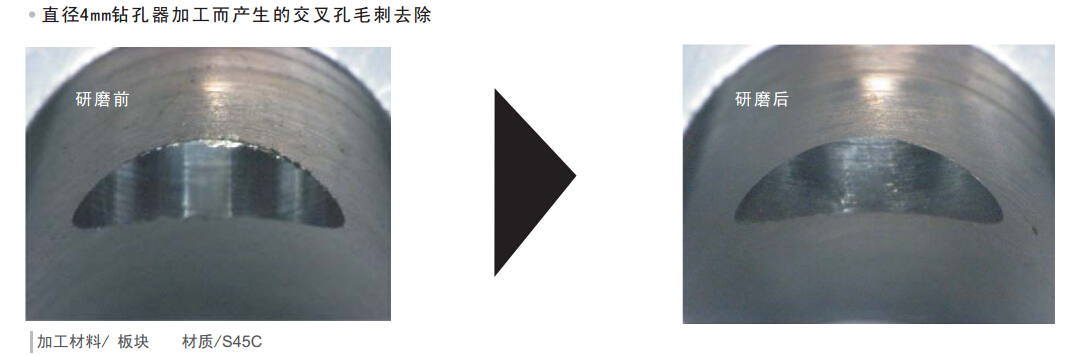 安裝在NC機(jī)械或?qū)S迷O(shè)備上,實(shí)現(xiàn)交叉孔毛刺去除自動(dòng)化。
