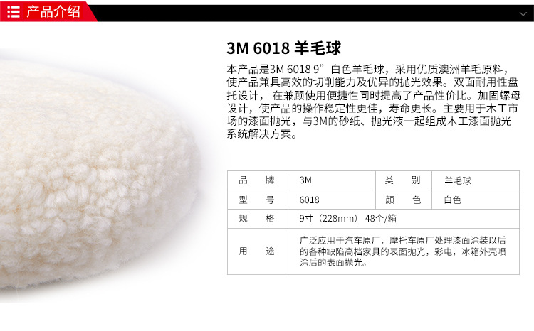 • 3M 6018雙面羊毛球3寸羊毛盤拋光盤拋光球主要用于汽車美容、玻璃制品、醫(yī)療器械、精密儀器、刀具、金銀飾品、貴重金屬等表面的拋光打磨。