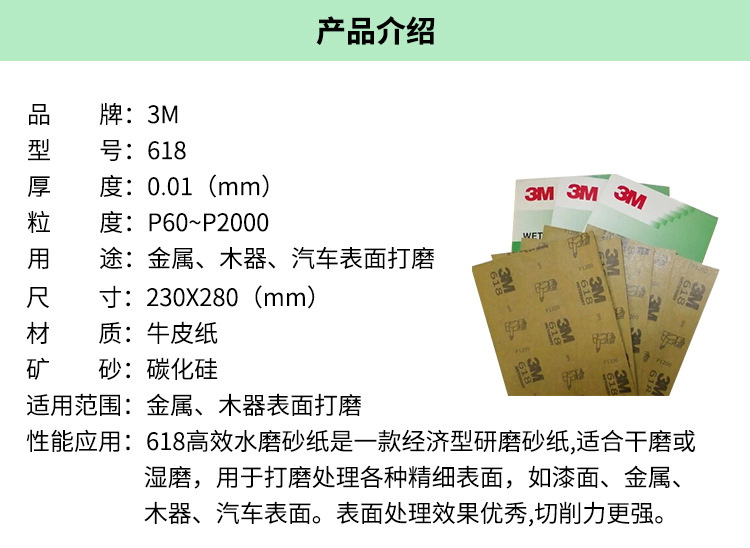 • 618高效水磨砂紙是一款經(jīng)濟(jì)型研磨砂紙, 適合干磨或濕磨,用于打磨處理各種精細(xì)表面,如漆面。表面處理效果優(yōu)秀, 切削力更強(qiáng)。