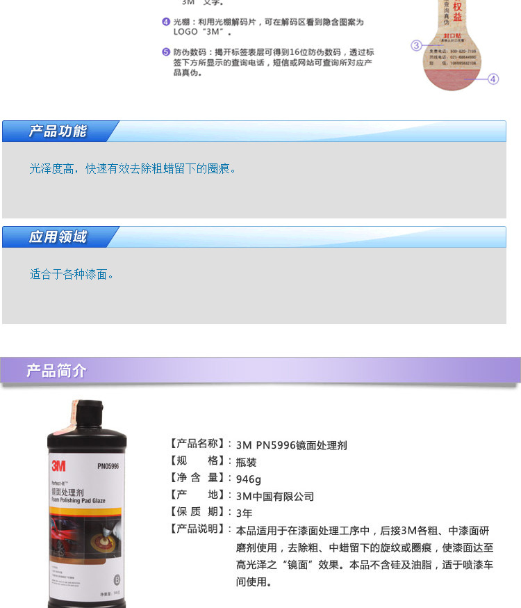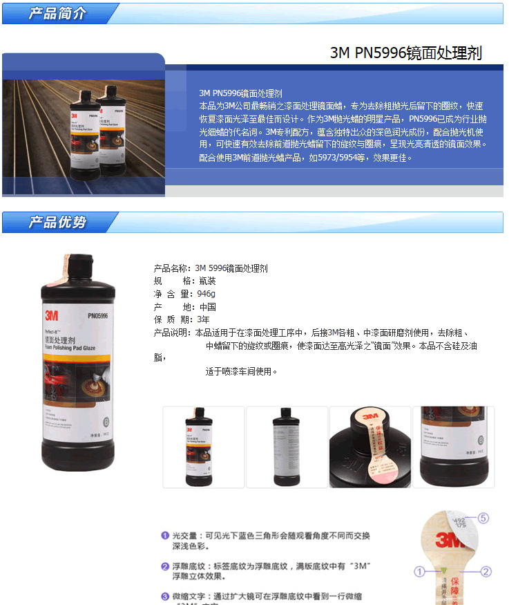 訂購(gòu):3M PN5996鏡面處理劑 劃痕修復(fù)汽車(chē)蠟