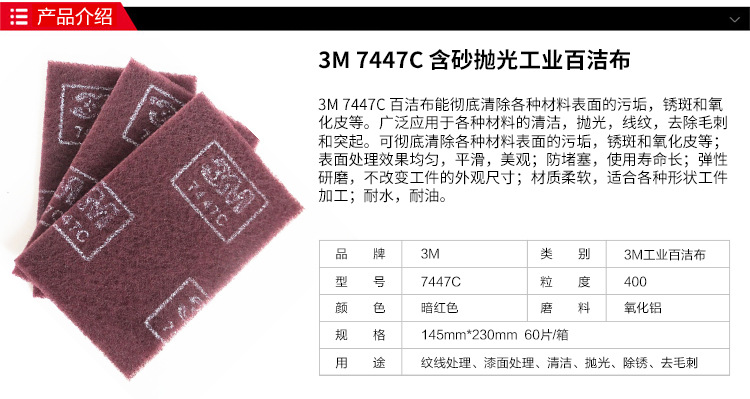 訂購:3m 7447C 7447 含砂拋光工業(yè)百潔布