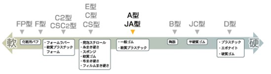 上圖所示為橡膠硬度計(jì)的種類圖, 根據(jù)試樣的種類設(shè)計(jì)不同的硬度計(jì). 符合 JIS K 6253標(biāo)準(zhǔn)的A型橡膠硬度計(jì)是最普遍最常用的一款.但是通常情況下,測(cè)量值在10點(diǎn)~90點(diǎn)之間,使用A型硬度計(jì),A90點(diǎn)以上時(shí)使用D型硬度計(jì)(硬質(zhì)材料使用),A20點(diǎn)以下時(shí)使用C型或E型硬度計(jì)(軟質(zhì)材料使用)。就是說,根據(jù)試料的種類選擇合適的機(jī)型最重要。