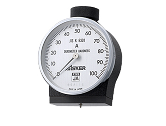 上圖所示為橡膠硬度計(jì)的種類圖, 根據(jù)試樣的種類設(shè)計(jì)不同的硬度計(jì). 符合 JIS K 6253標(biāo)準(zhǔn)的A型橡膠硬度計(jì)是最普遍最常用的一款.但是通常情況下,測量值在10點(diǎn)~90點(diǎn)之間,使用A型硬度計(jì),A90點(diǎn)以上時(shí)使用D型硬度計(jì)(硬質(zhì)材料使用),A20點(diǎn)以下時(shí)使用C型或E型硬度計(jì)(軟質(zhì)材料使用)。就是說,根據(jù)試料的種類選擇合適的機(jī)型最重要。
