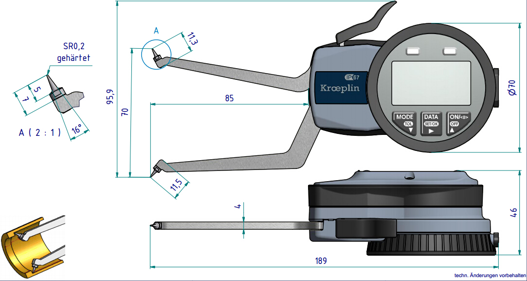 多個數(shù)顯設定功能: 絕對和相對測量, 上下限超差顯示等。