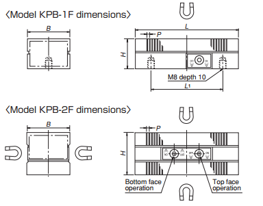 "1F"系列的磁塊有螺孔,方便使用者把磁塊固定在工作臺上;磁塊也可以固定在磁性吸盤上.
