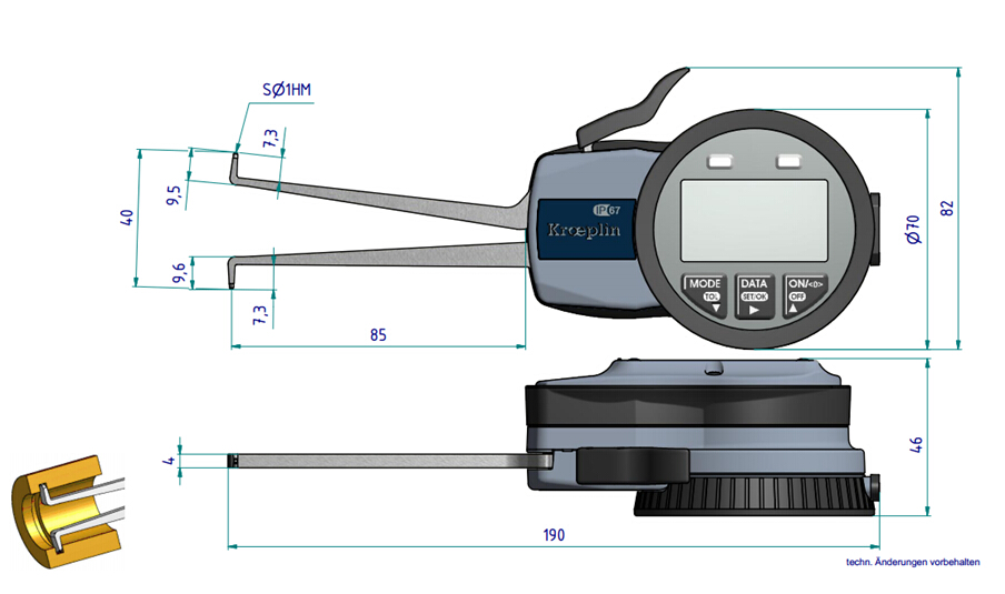 多個(gè)數(shù)顯設(shè)定功能: 絕對和相對測量, 上下限超差顯示等。