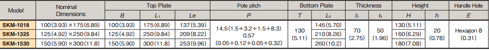 SKM系列使用的永磁吸盤是我們強大的RMT系列,稀土永磁吸盤。