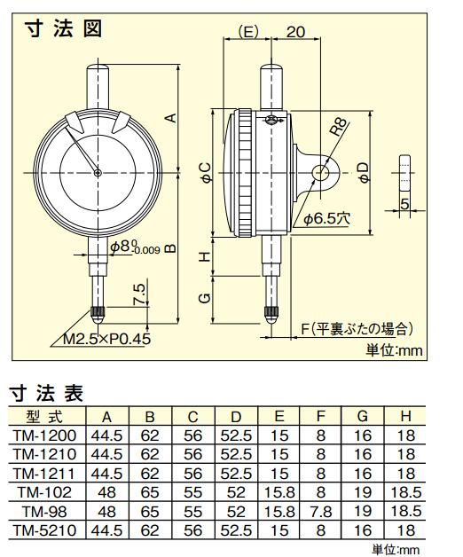 TM-5210 | 0.0005 | 0.08(3.5) | 0.8 | 2.5 | - | ±2.5 | 2.5 | 1.5以下 | 170 |