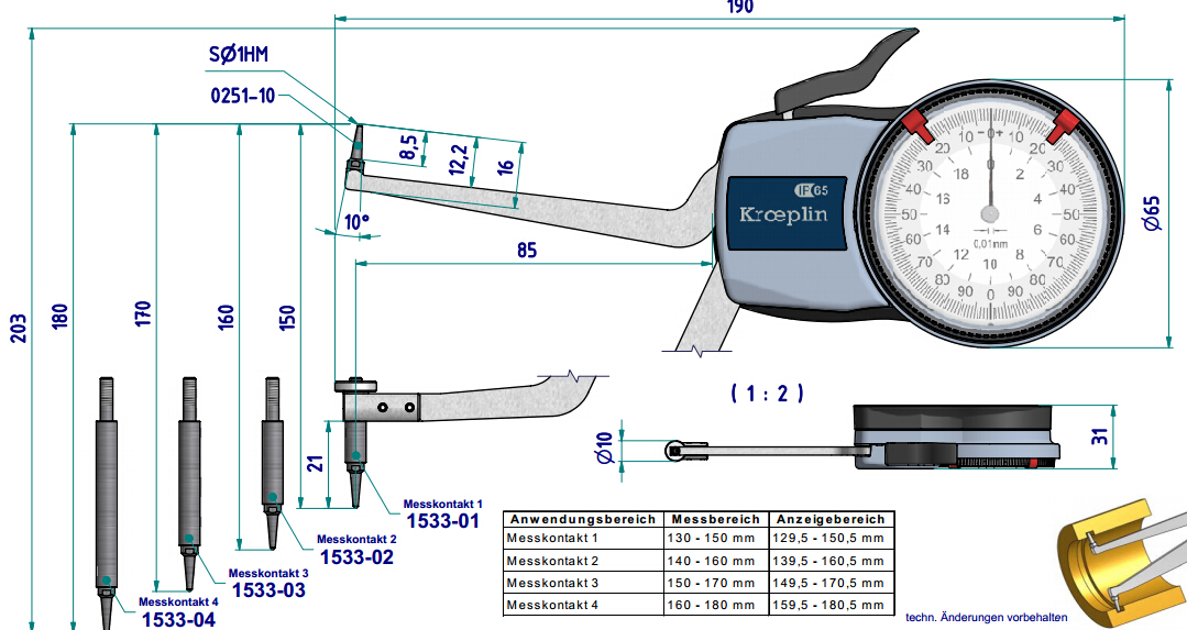 • 德國(guó)kroeplin針盤(pán)式內(nèi)卡規(guī)H2M130,測(cè)量范圍:130-180mm,精度0.01mm,喉深長(zhǎng)度:85mm。