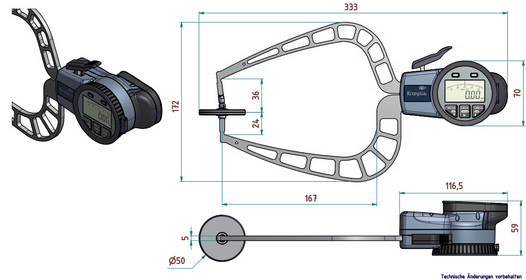 • 德國kroeplin數(shù)顯外卡規(guī)C450T,測量范圍:0-50mm,喉深167mm,可測量板面厚度!