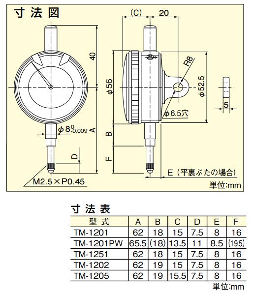 teclock千分表TM-1201產(chǎn)品尺寸圖