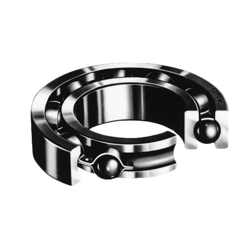 (1)滿球軸承,由于在內(nèi)圈及外圈上設(shè)計了填球口,可比深溝球軸承多裝球。因為有填球口,所以不適于軸向載荷大的用途。另外使用軸承時,盡可能將外圈的填球口位置只作為非載荷圈。保持架為沖壓保持架。