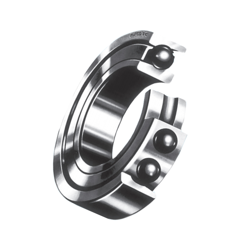 (2)4點(diǎn)接觸球軸承-內(nèi)圈分成二個(gè),以一個(gè)軸承可以承受二個(gè)方向的軸向載荷。接觸角為35度軸向載荷能力大,適用于承受純軸向載荷,或軸向載荷大的合成載荷。使用銅合金車(chē)制保持架。