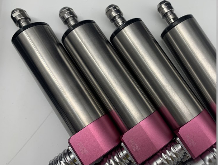 上圖為一個(gè)控制器+一個(gè)分配器可搭配4支外徑33mm電主軸,可節(jié)省加工成本。圖為客戶真實(shí)需求配套產(chǎn)品。俗稱”一拖四”電主軸方案。