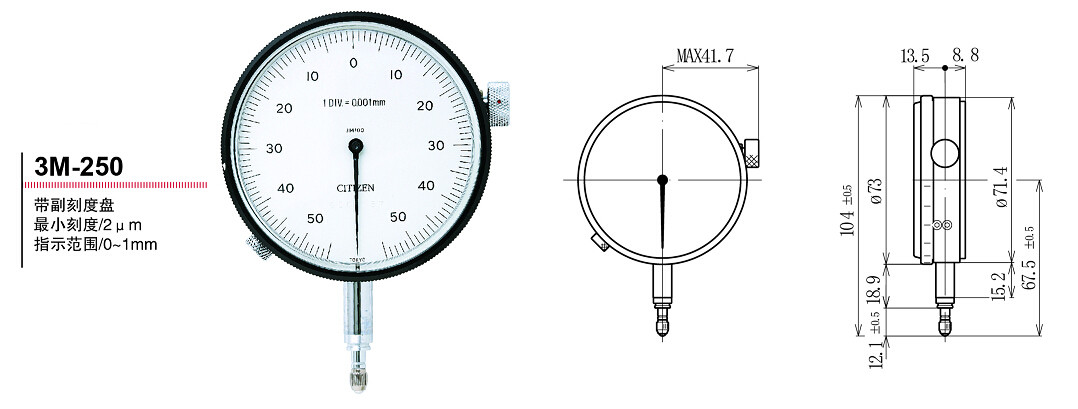 訂購:西鐵城CITIZEN指針測微器3M-250