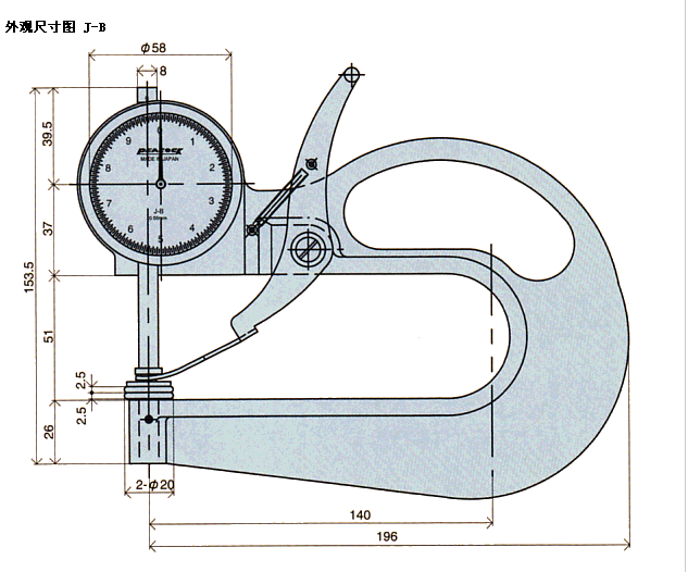 日本孔雀peacock測厚規(guī)J-B,測量范圍0-35mm,精度0.05mm,測量喉深大,喉深140mm,可以測量寬板的中心厚度。